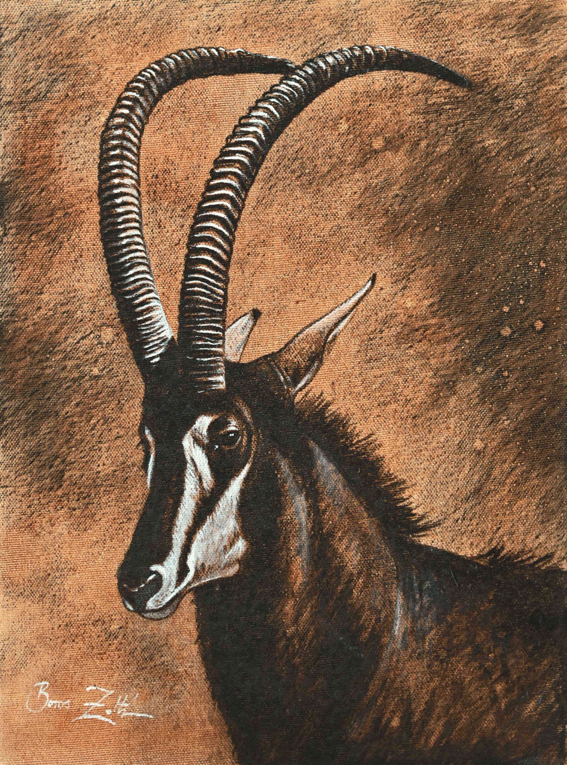 Twice, both times in Matetsi, Peter has tracked a wounded sable bull for three days. The first one was shot in the neck and rump by a hunter named Dave Young from Canada. He hit the sable with a .270, at about five o’clock in the evening. The blood dried up and the next day Peter continued where he had left off. At nightfall that day, even I was not so sure that Peter was still on the right track. The next day at about 11am Peter led us to the edge of a big vlei. In the centre of it, beneath two Leadwood trees, stood Dave’s sable with a handful of grass in its mouth. I recognised the horn formation instantly and told Dave to shoot. This time he shot the animal in the heart. The government game scout worked himself up into a fever when he saw the animal go down saying that Dave had shot two different sable! I must admit that my anxiety was just under the surface as we marched apprehensively towards that beautiful animal.