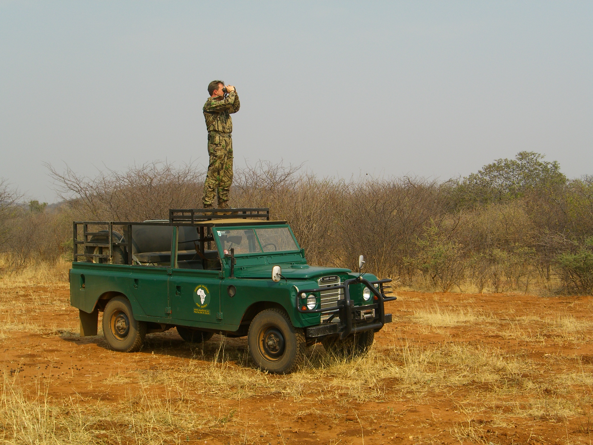 The windshield is folded down so we can feel the fresh morning breeze on our faces and smell the nature around us although we smell more the unburned fuel from the old “Landy”. We park the reliable old-timer under a camelthorn tree before we walk the last three-quarters of a mile to our blind through the darkish savanna.