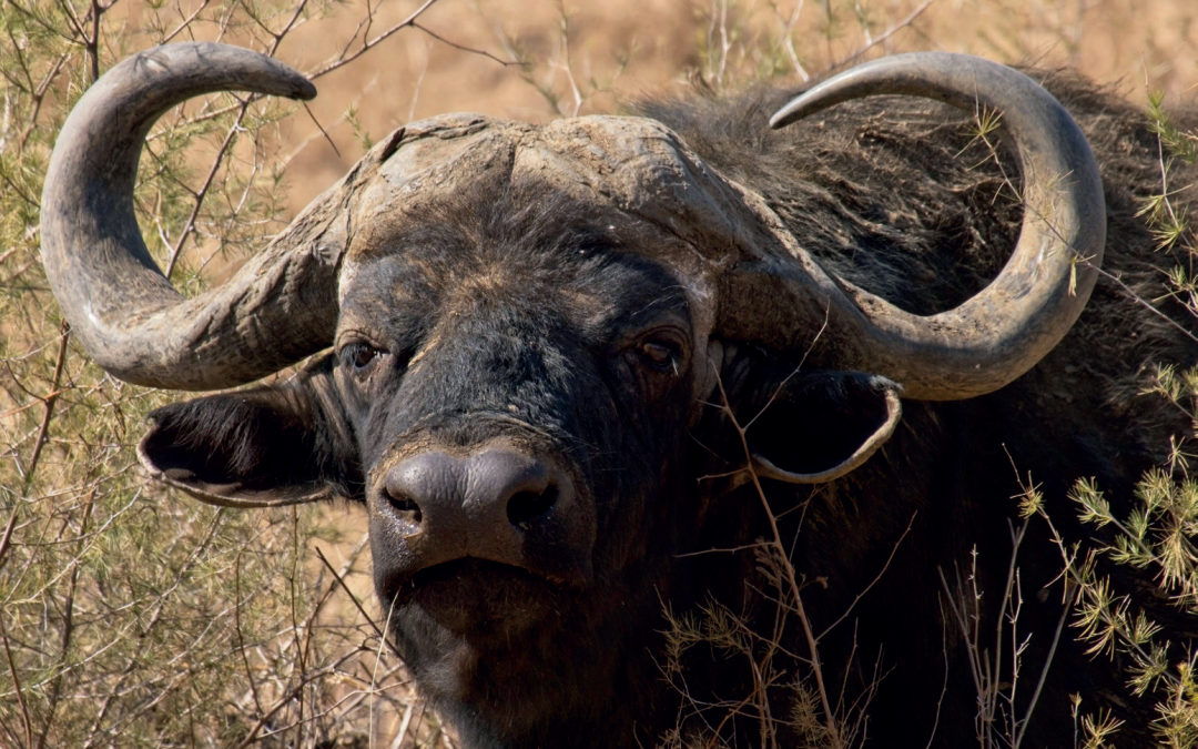 Realizing that Barry did not possess the best ‘bush eyes’, I figured that we really needed to get onto buffalo in the morning when there was ample light, as that would provide the best visibility for his seasoned eyes. So, on day seven of the seven-day safari, we set out with renewed confidence that success was just an opportunity away. Heading straight to the reeds, we began the morning as we had done every morning previous, glassing and looking for egrets. As we rounded a familiar bend, I saw the thin arm of Jabulani reaching for the sticks, and I knew that he had seen something that had eluded the rest of us.