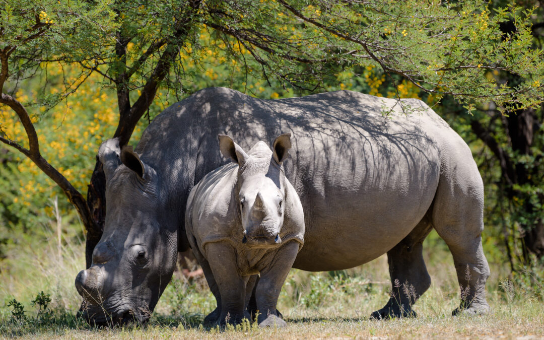 For the past 45 minutes I’d crouched immobile behind a low thornbush on the edge of a 20–acre grass–covered meadow, watching five rhinos graze. Moving their enormous heads from side to side, they cut a swath through the field, ingesting an impressive amount of green groceries.