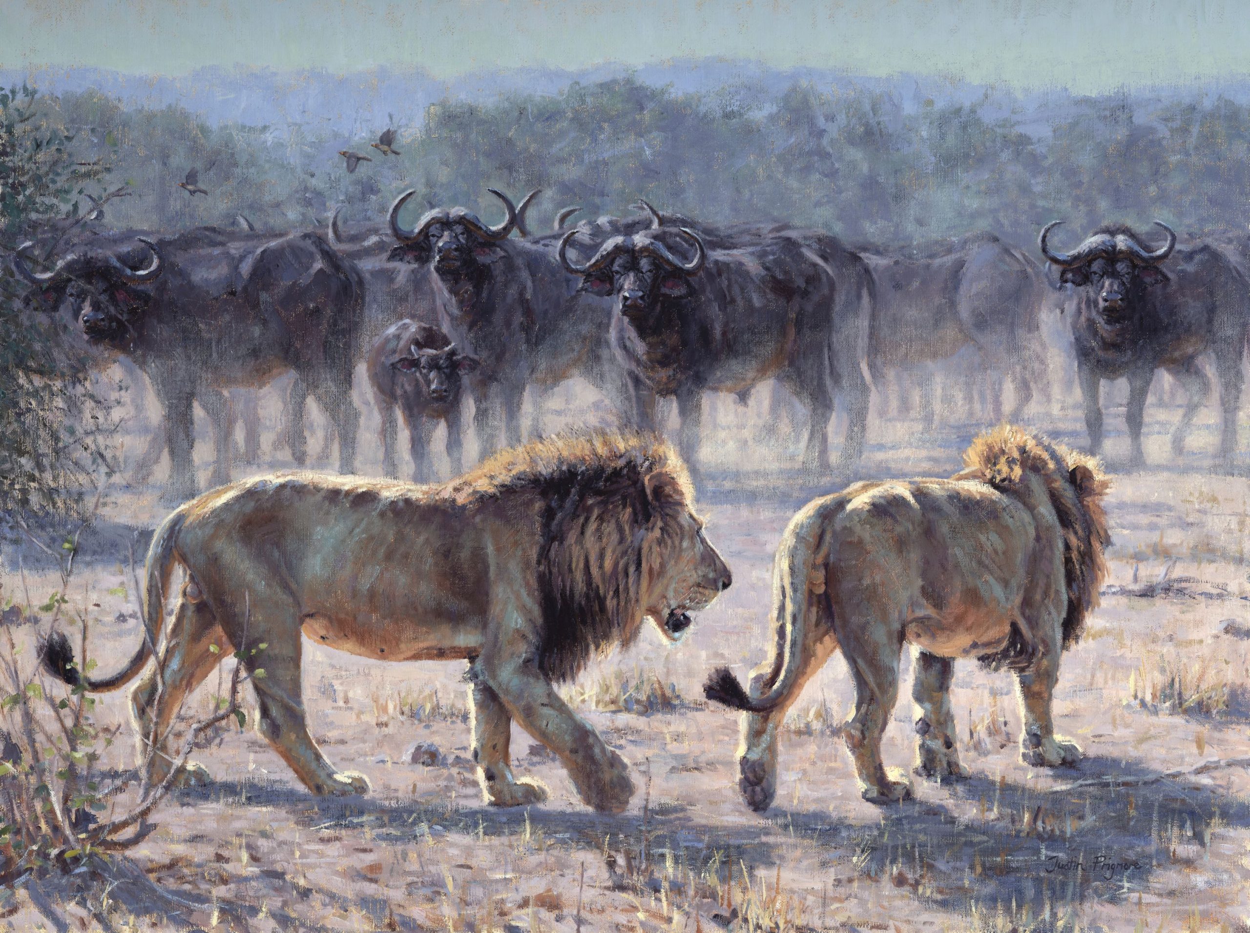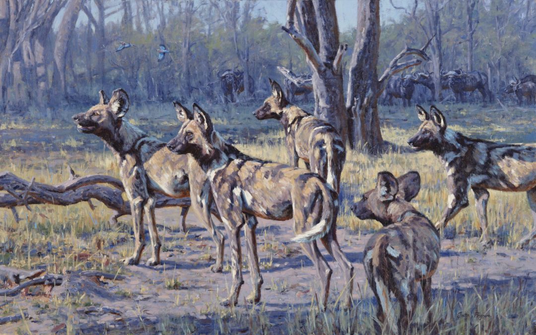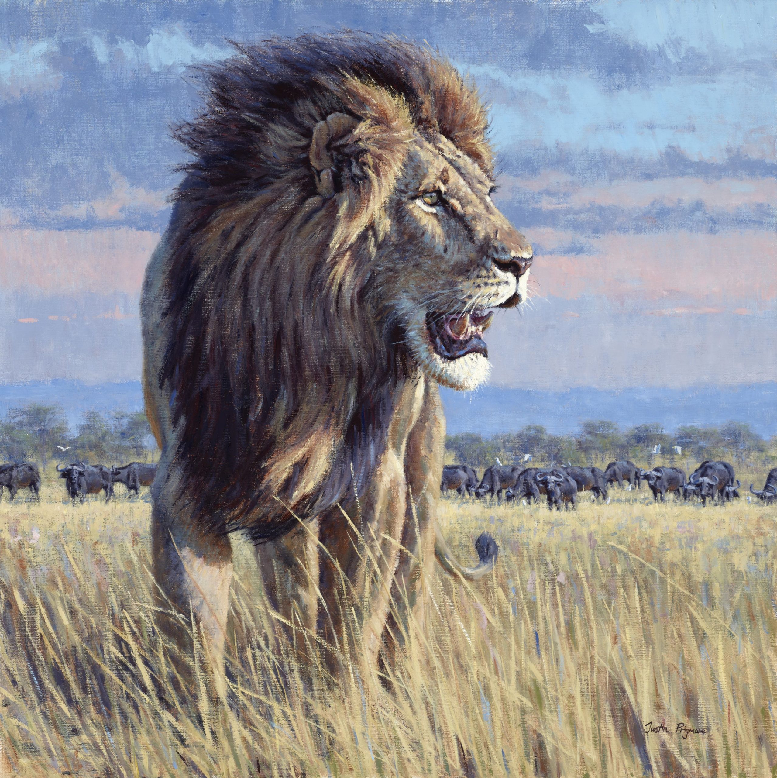 Justin has exhibited his work internationally in prestigious juried shows, auctions and galleries, including with the Society of Wildlife Artists, the Society of Animal Artists and at the National Museum of Wildlife Art in Jackson Hole. He has gained a reputation for dramatic and powerful large-scale paintings and his work can be found is some very prominent collections world-wide. Awards include the Liniger Purchase Award from the Society of Animal Artists, the Best British Wildlife Award at the National Exhibition of Wildlife Art and the winner of Birdwatch Magazine’s Artist of the Year. He is represented by the world-renowned Rountree Tryon Gallery and the legendary gunmakers John Rigby & Co. It is his association with Rigby that has led him to successfully showing his paintings at the Dallas Safari Club and at the Safari Club International in Nashville. These events have had a huge impact and demand for his work has steadily increased with clients from the US. Justin will be returning to the US this month to Atlanta and then Nashville with his latest collection inspired by his recent travels in Tanzania.