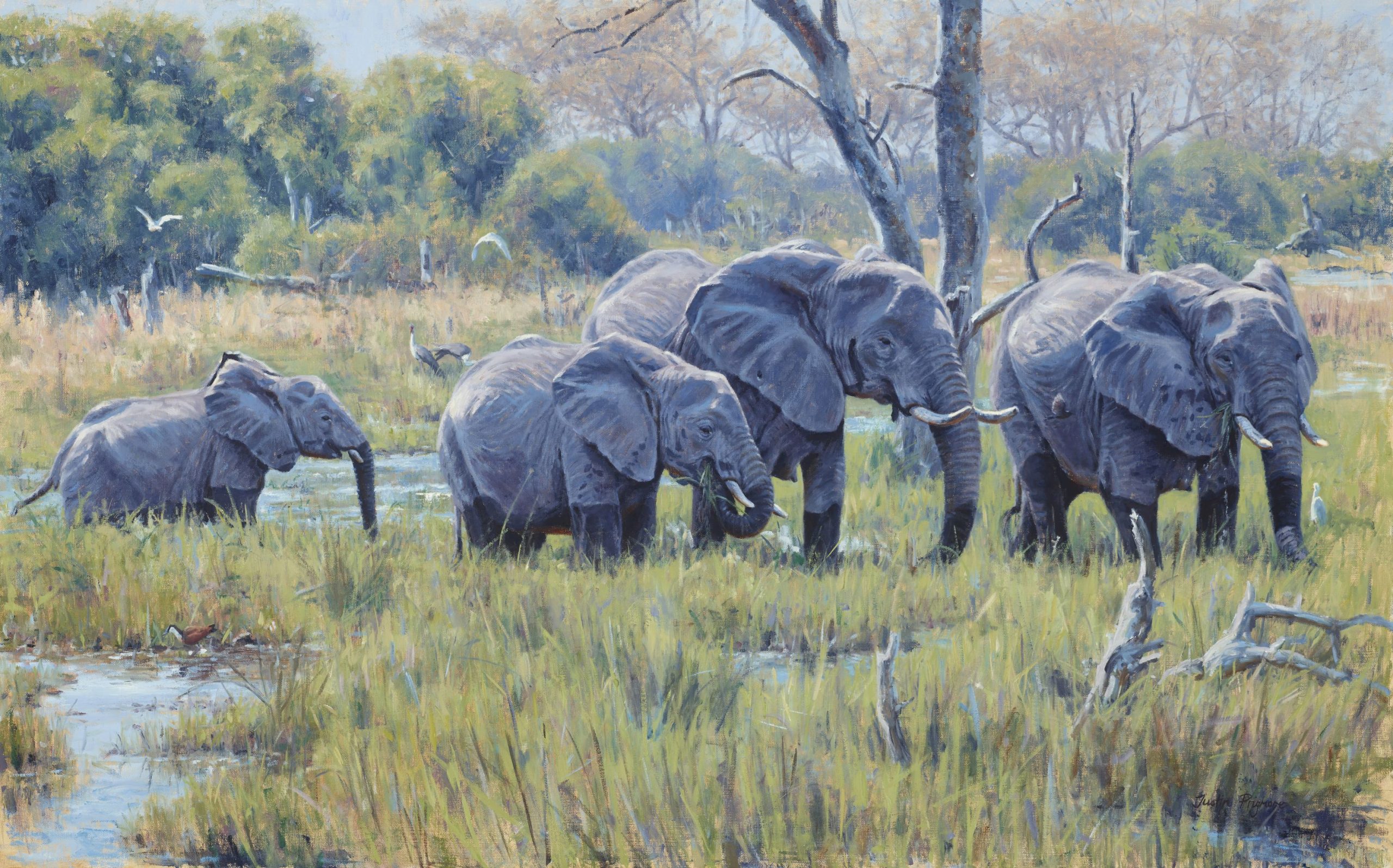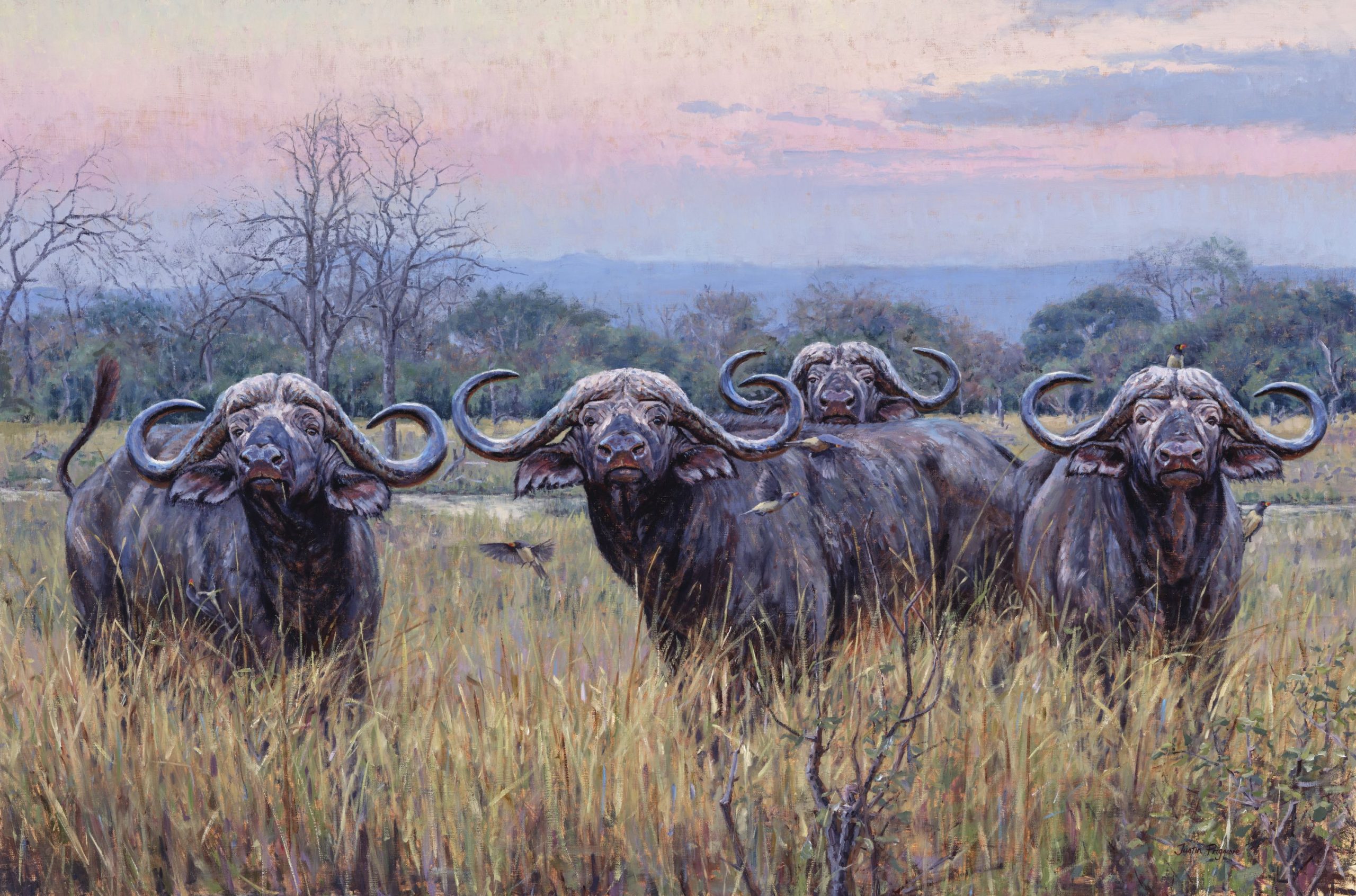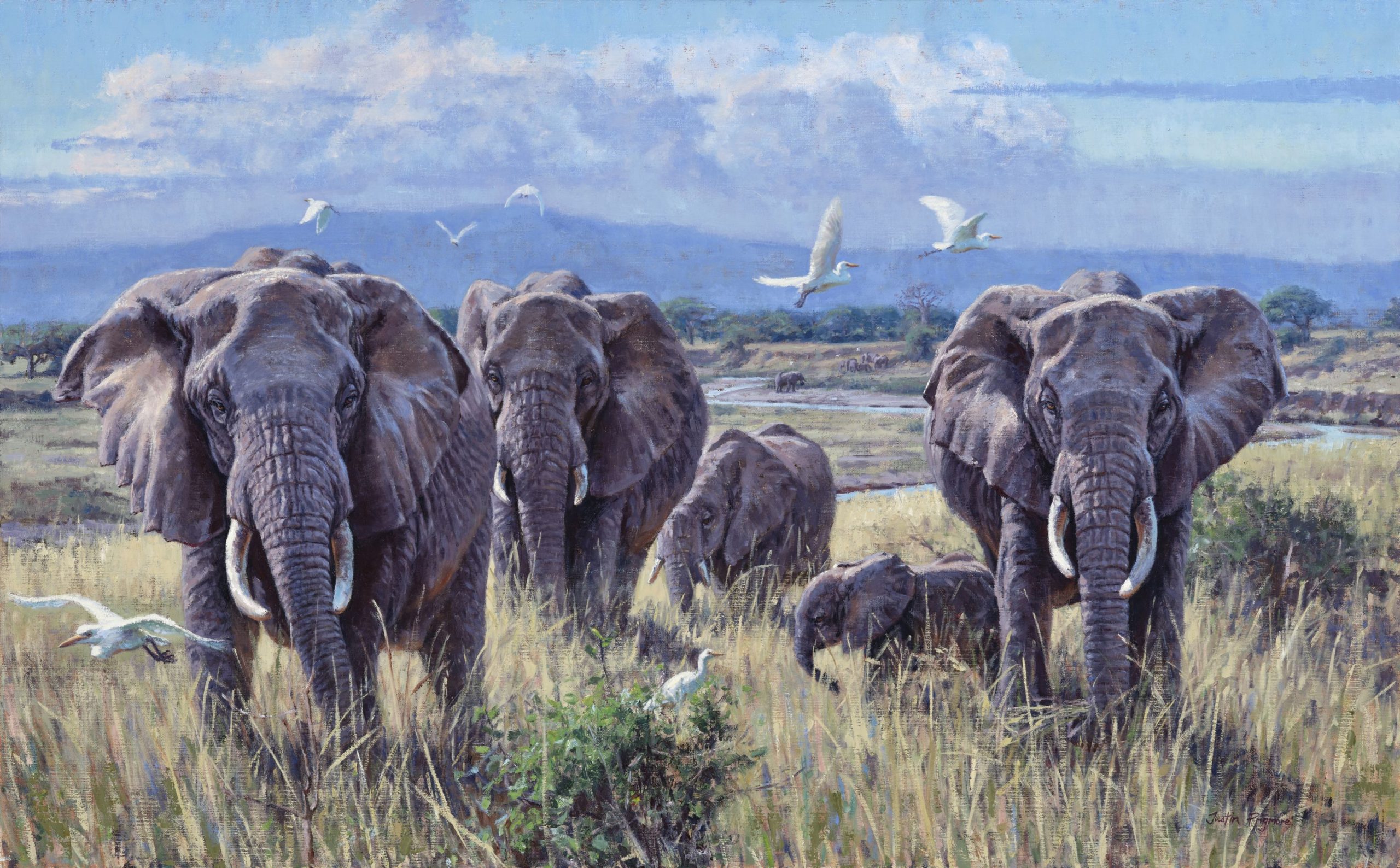 Justin has exhibited his work internationally in prestigious juried shows, auctions and galleries, including with the Society of Wildlife Artists, the Society of Animal Artists and at the National Museum of Wildlife Art in Jackson Hole. He has gained a reputation for dramatic and powerful large-scale paintings and his work can be found is some very prominent collections world-wide. Awards include the Liniger Purchase Award from the Society of Animal Artists, the Best British Wildlife Award at the National Exhibition of Wildlife Art and the winner of Birdwatch Magazine’s Artist of the Year. He is represented by the world-renowned Rountree Tryon Gallery and the legendary gunmakers John Rigby & Co. It is his association with Rigby that has led him to successfully showing his paintings at the Dallas Safari Club and at the Safari Club International in Nashville. These events have had a huge impact and demand for his work has steadily increased with clients from the US. Justin will be returning to the US this month to Atlanta and then Nashville with his latest collection inspired by his recent travels in Tanzania.